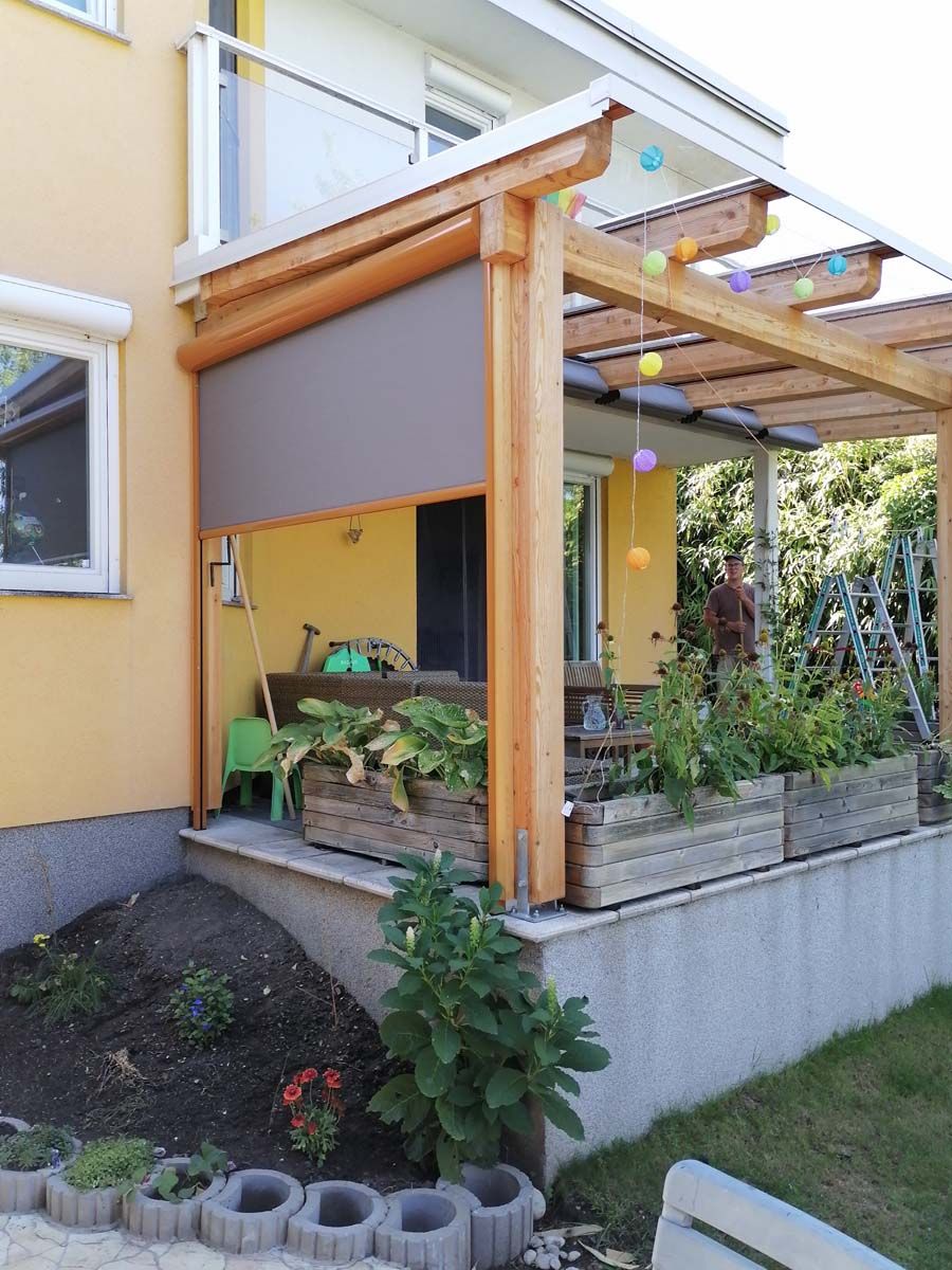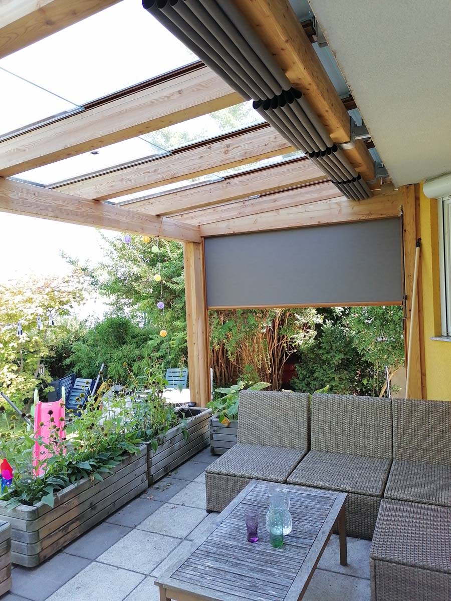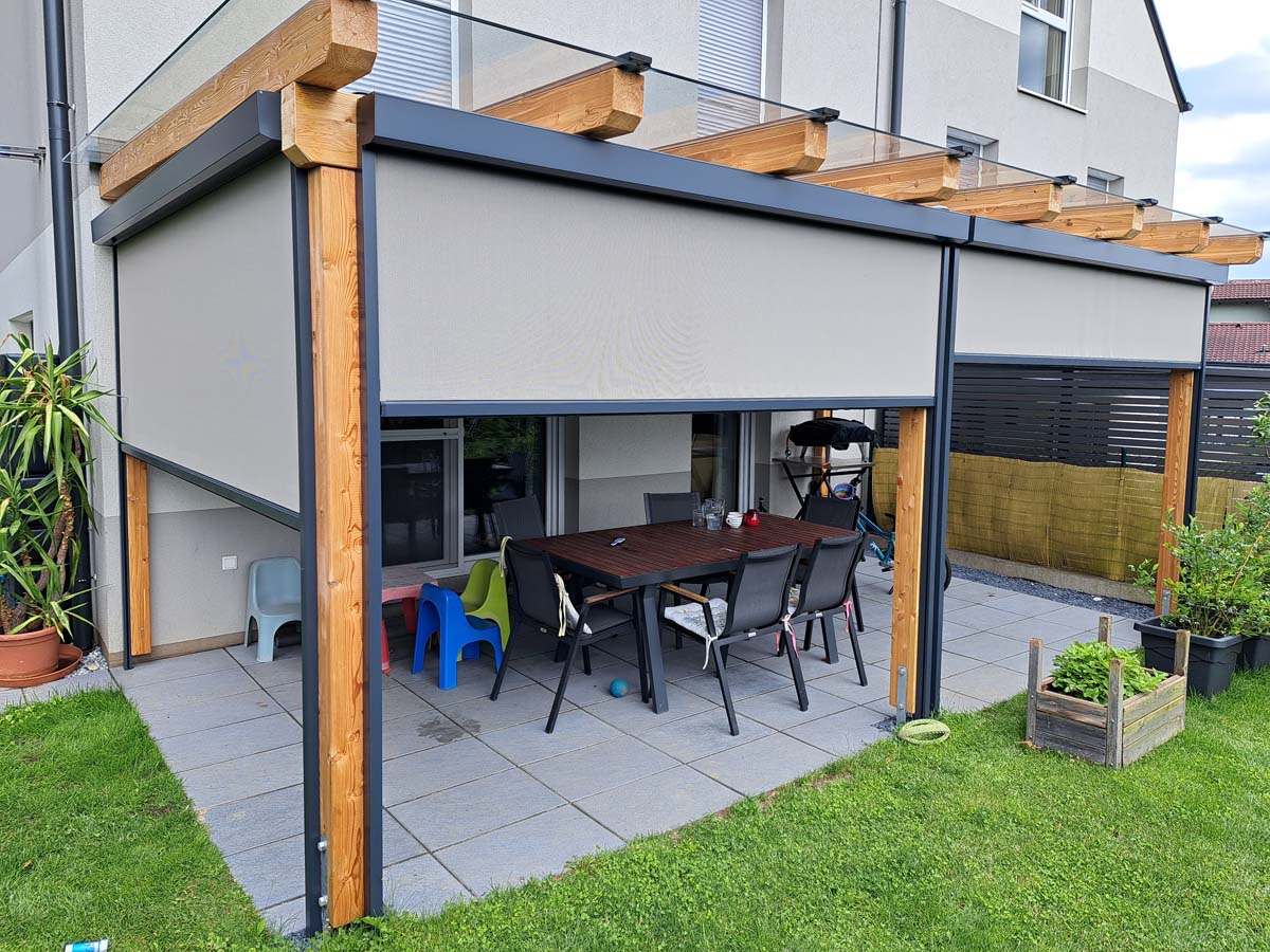 - Rollmarkise für die seitliche Beschattung der Pergola