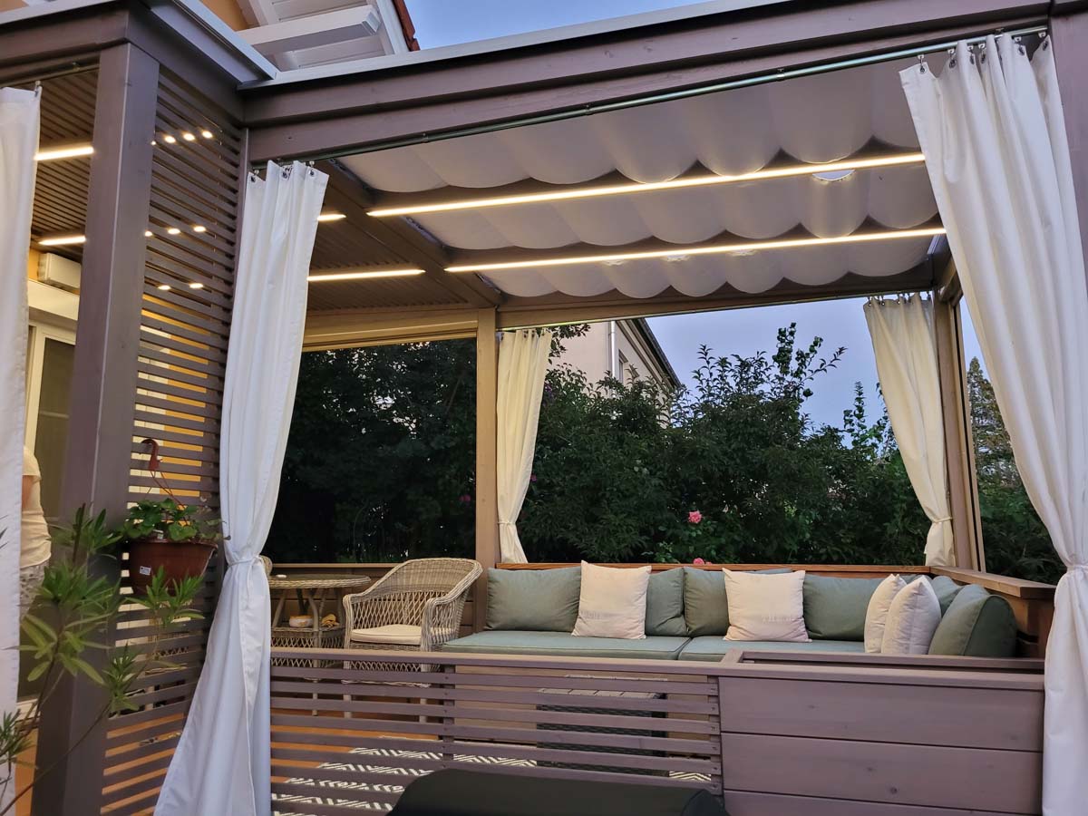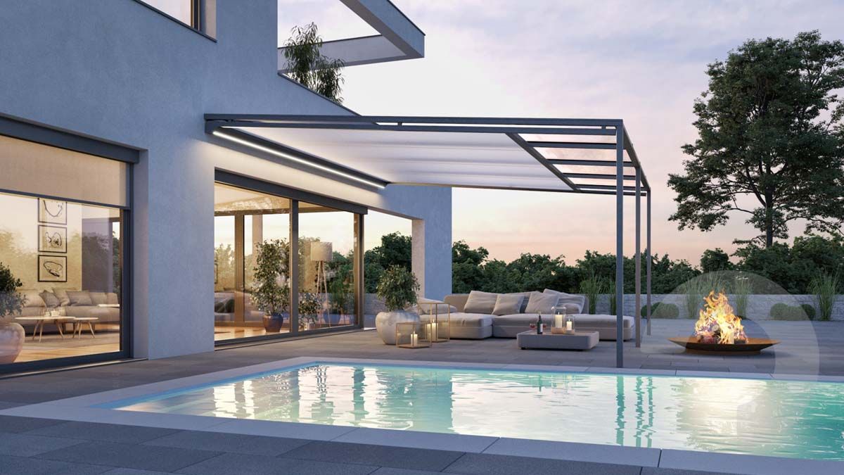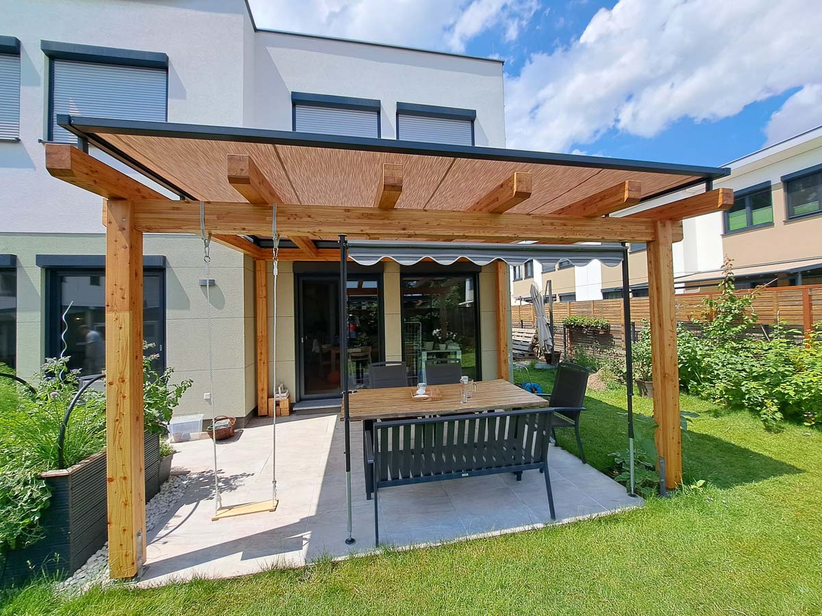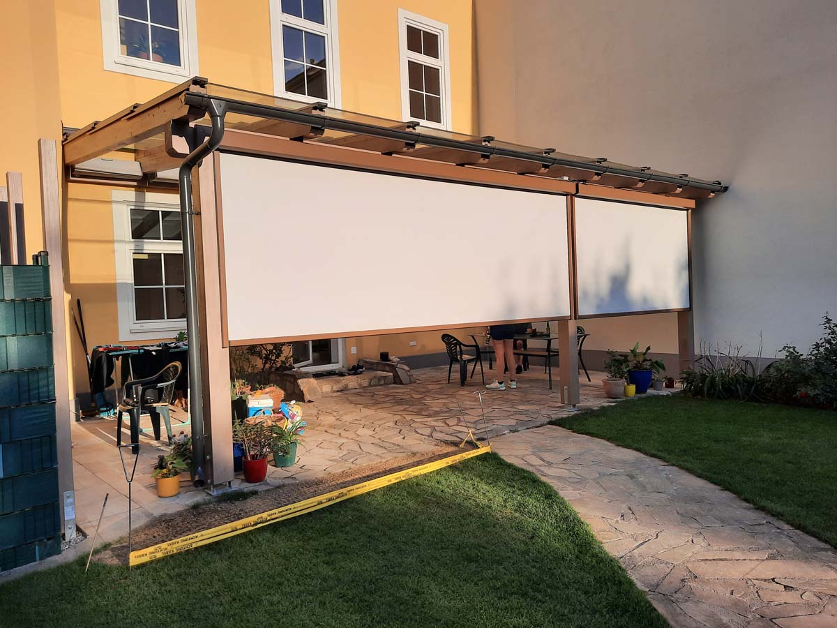 - Rollmarkise für die seitliche Beschattung der Pergola