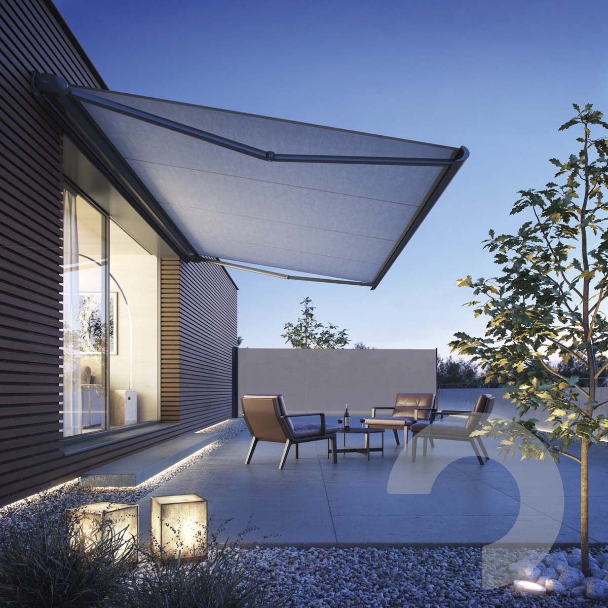 - Hochwertige Markise für großflächige Beschattung unter Glaseindeckung