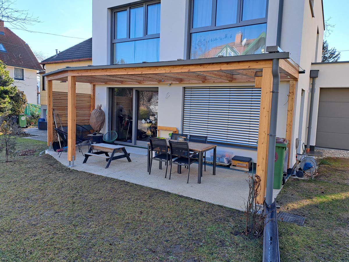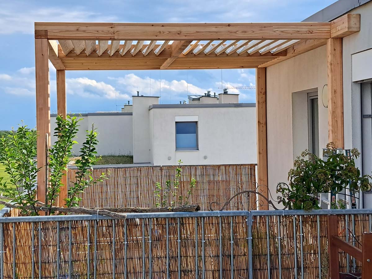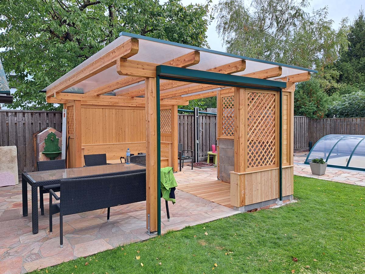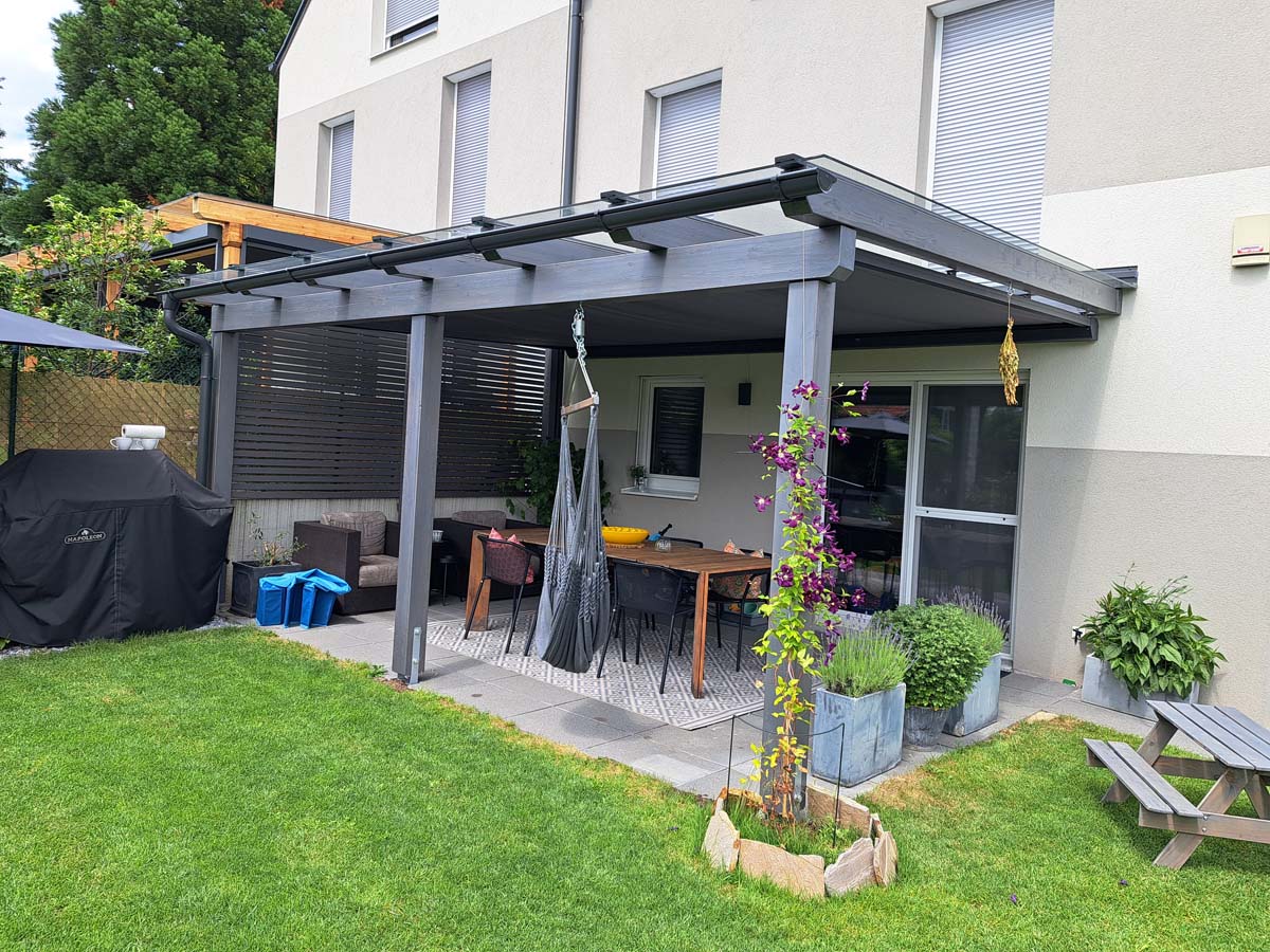 Holz-Grilz bietet maßgeschneiderte Lösungen für alles rund um Haus und Garten. Dazu gehören Pergolen und Terrassenüberdachungen – auf Wunsch ergänzt durch den passenden Sonnenschutz.