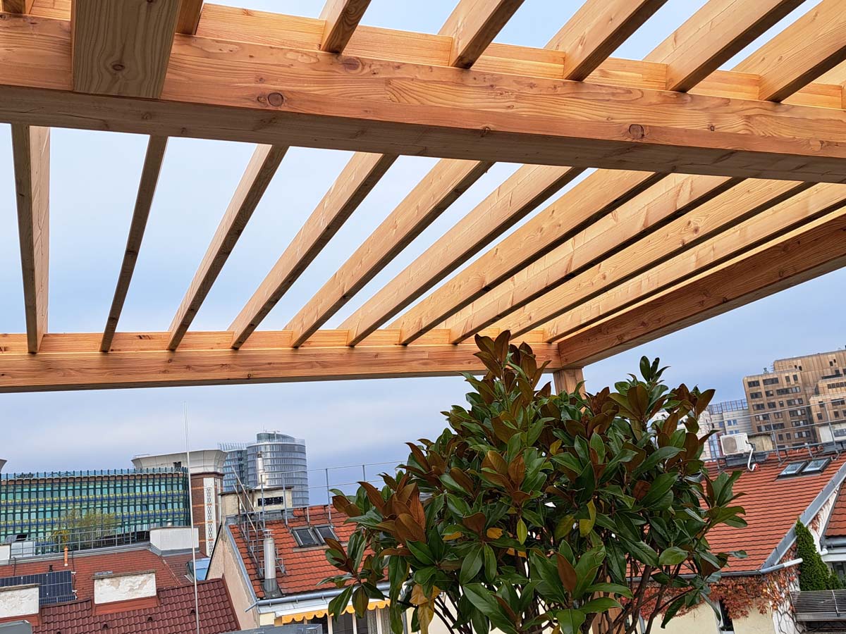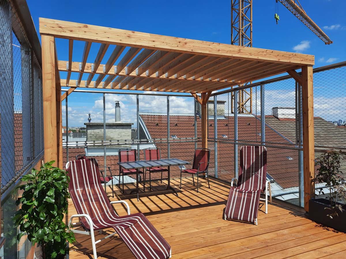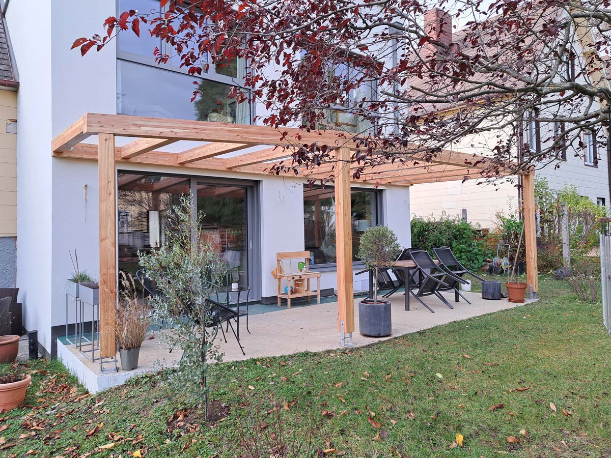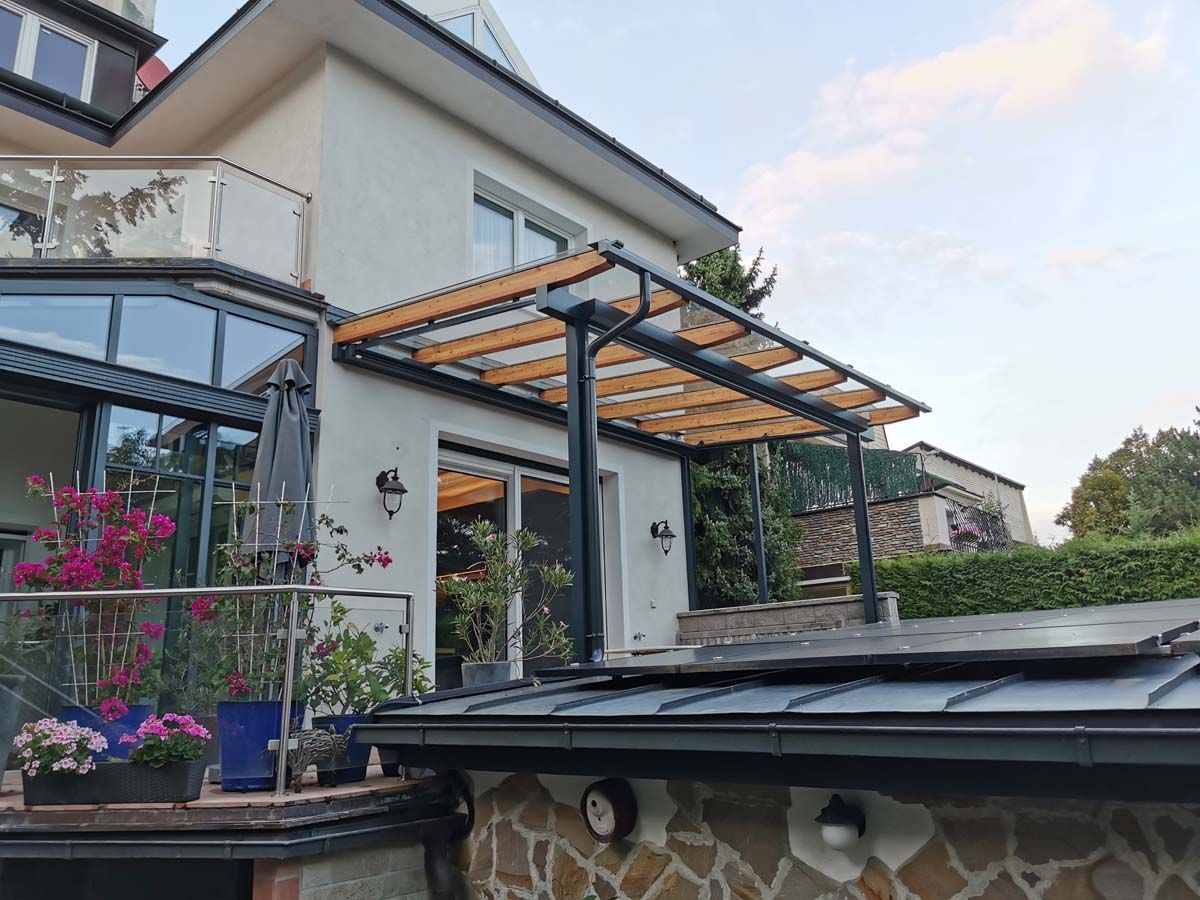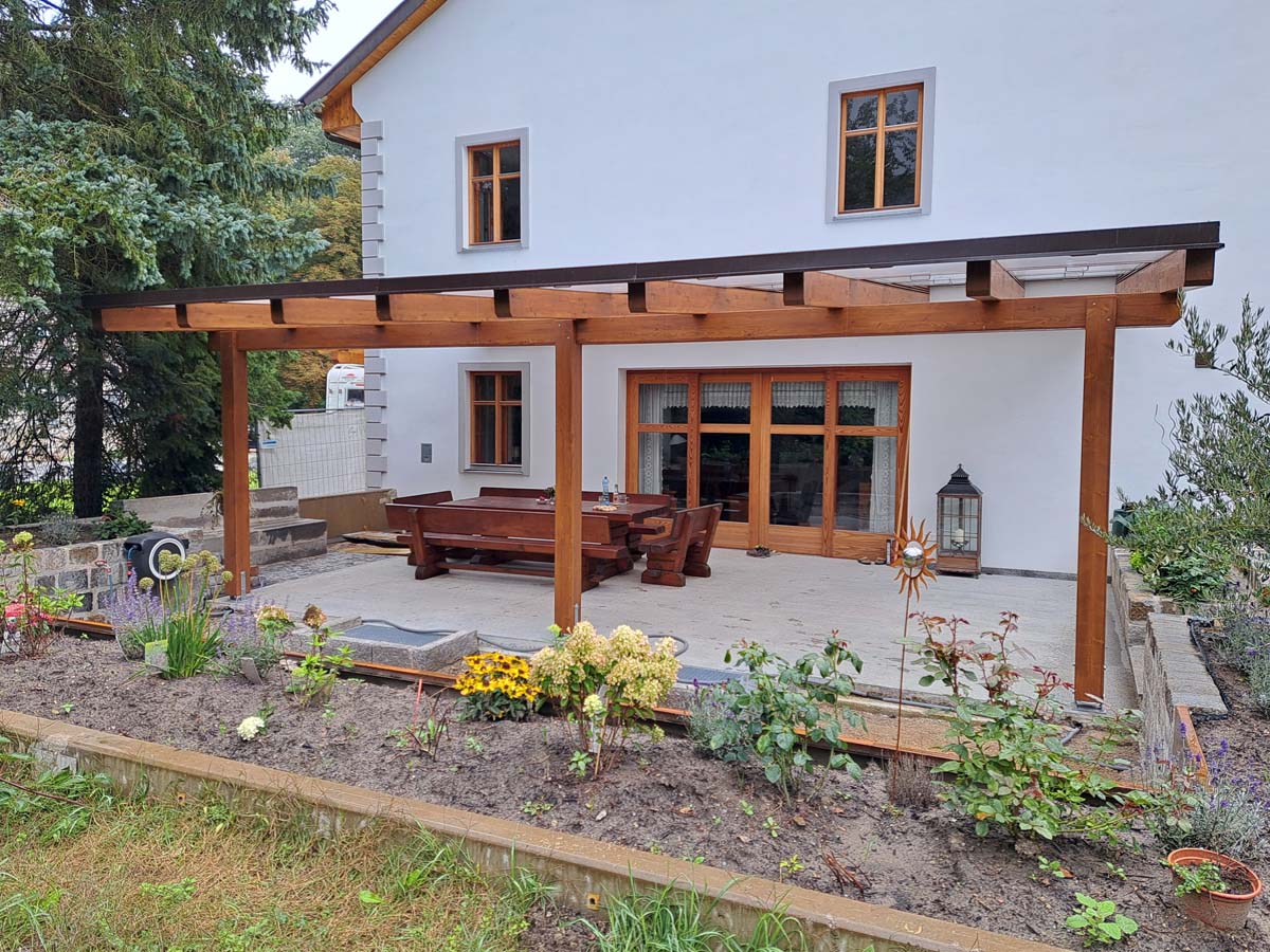 Holz-Grilz bietet maßgeschneiderte Lösungen für alles rund um Haus und Garten. Dazu gehören Pergolen und Terrassenüberdachungen – auf Wunsch ergänzt durch den passenden Sonnenschutz.