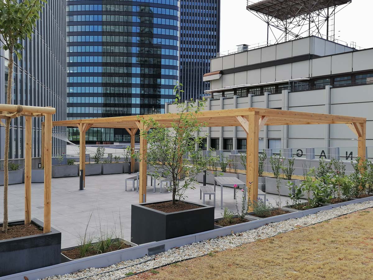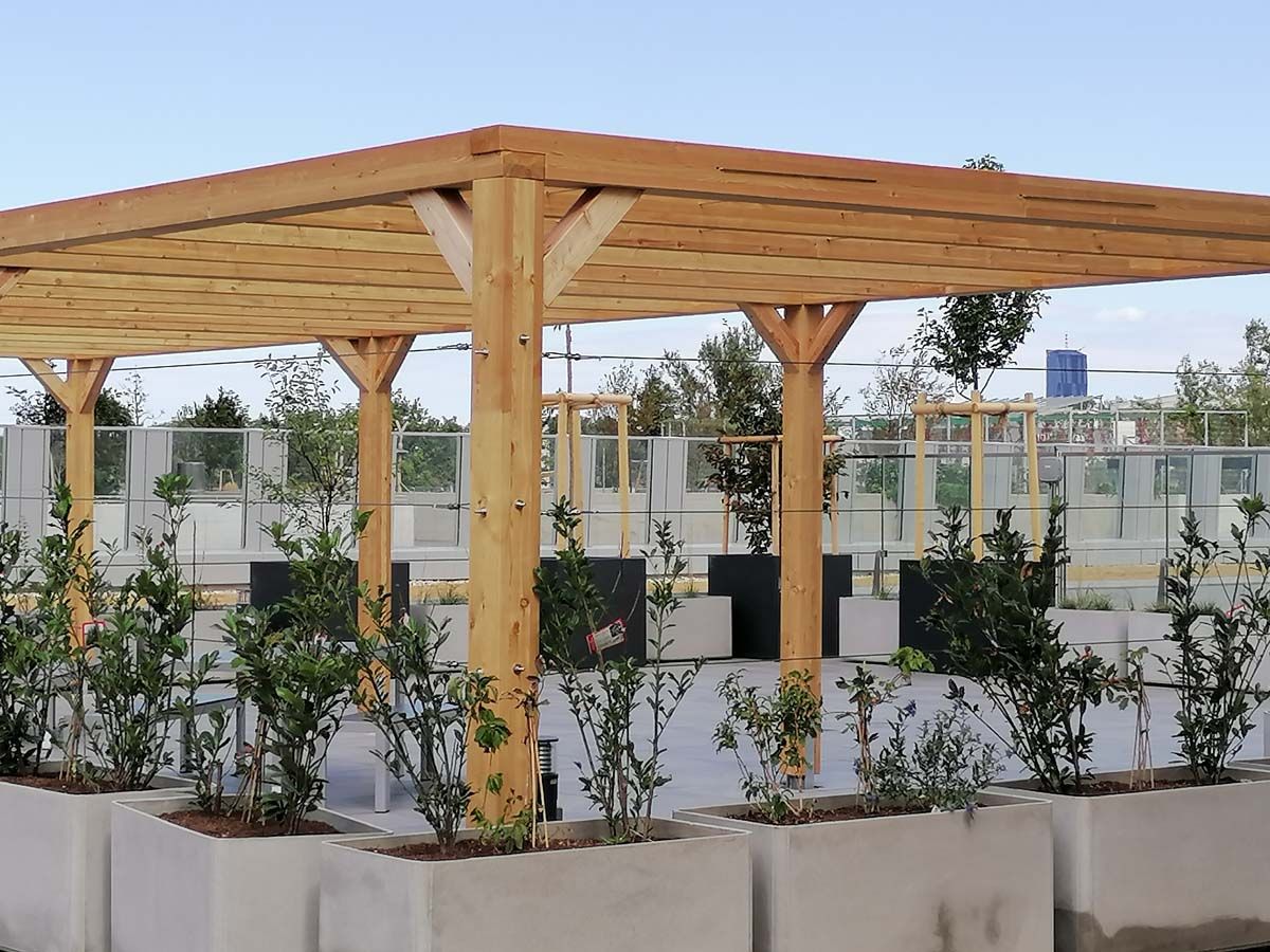 Unsere Pergolen fertigen wir standardmäßig aus hochwertigem Fichtenleimholz und werden mit farbiger Lasur beschichtet. Alternativ ist eine Ausführungen in Lärchenholz (unbehandelt, lasiert oder geölt) möglich. Durch stabile Metallverankerungen vermeiden wir Abmorschung im Bodenbereich.