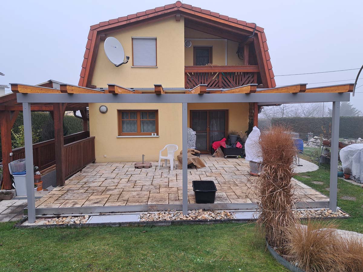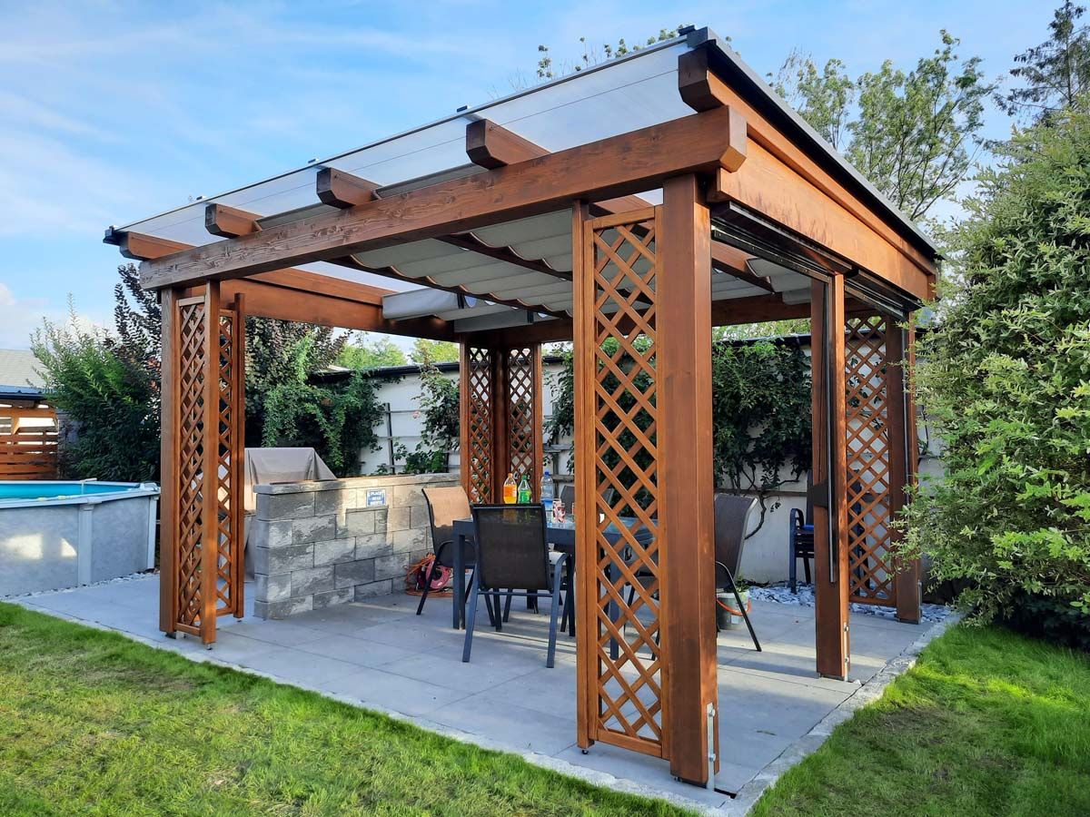 Ob freistehend, als Anbau oder einreihig – Ihre Pergola lässt sich flexibel gestalten. Sie kann überdacht oder als reine Schattenspenderin ausgeführt werden. Zusätzlich stehen verschiedene Wandoptionen zur Verfügung – von offenen Konstruktionen bis hin zu massiven, geschlossenen Elementen.